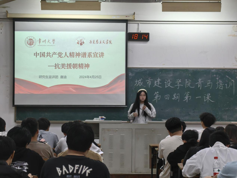 第一讲由常大小青马理论宣讲团成员唐迪主讲,她从抗美援朝历史开始,通过细致的讲解和丰富的图片视频,分析了抗美援朝精神的丰富内涵,即爱国主义精神、革命英雄主义精神、革命乐观主义精神、革命忠诚精神和国际主义精神。“青山处处埋忠骨”的毛泽东与毛岸英的故事、特级战斗英雄杨根思喊出的“三个不相信”的战斗宣言、“舍身堵抢眼”的黄继光和传承其精神的黄继光连……这一个个生动的历史故事,带领学员们接受了一场跨越时空的精神洗礼。最后,唐迪寄语同学们,作为新时代的青年马克思主义者,应始终铭记并积极传承伟大的抗美援朝精神,将其融入到个人理想与追求之中,为实现中华民族伟大复兴的中国梦,为推动构建持久和平、共同繁荣和谐的世界,贡献自己的青春力量。