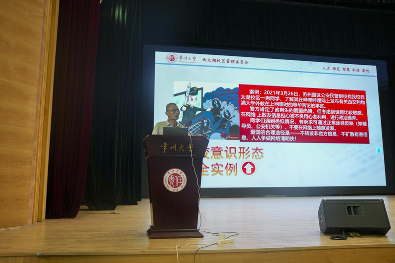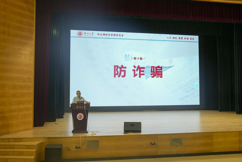 为落实新生入学安全教育要求,提升新生防范电信网络诈骗的能力,10月13日晚,日本成人视频 于西太湖校区立艺楼大礼堂举办2025级新生反诈宣传讲座。西太湖校区管委会邹峰老师主讲,全体新生参与。