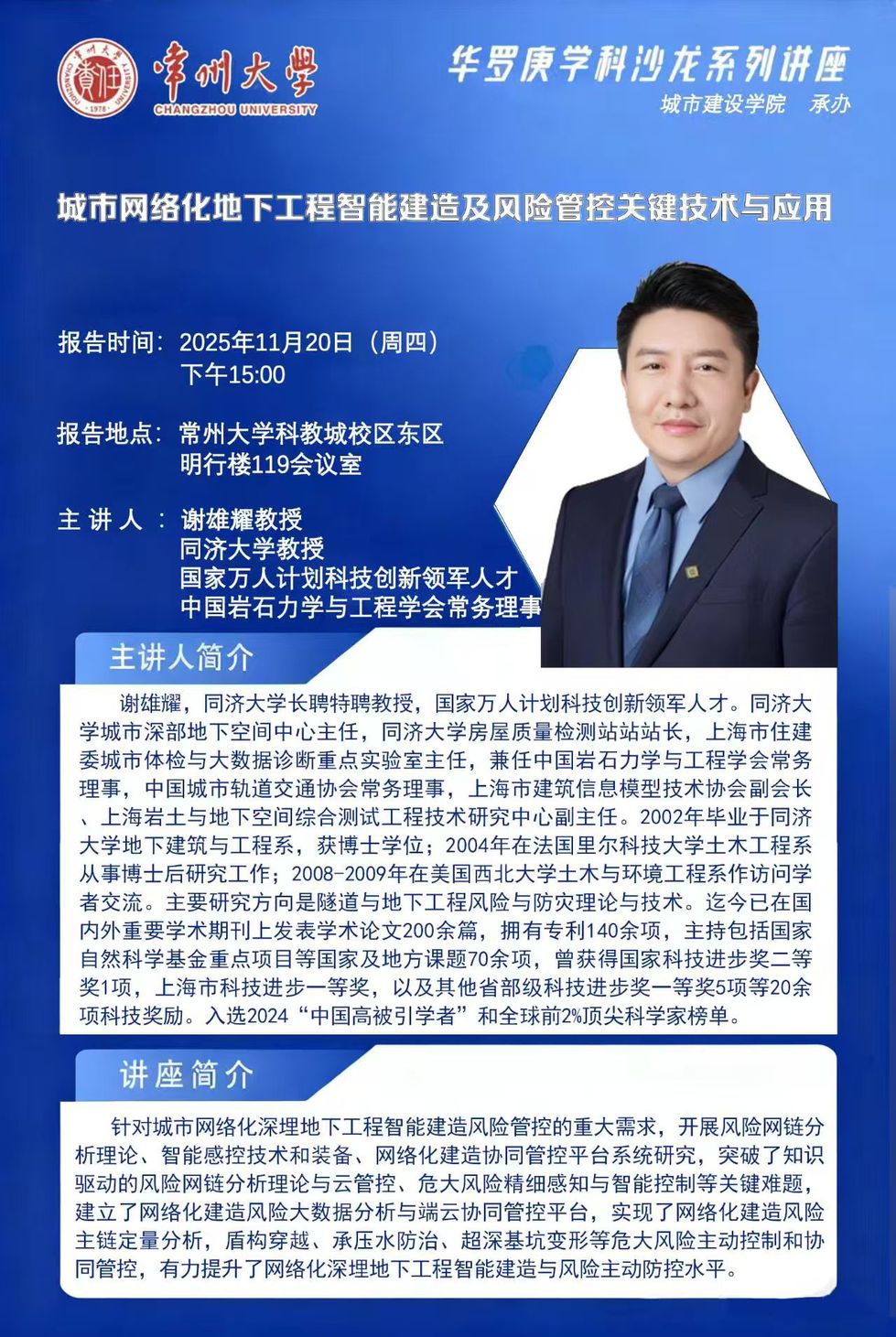 华罗庚学科沙龙系列讲座:城市网络化地下工程智能建造及风险管控关键技术与应用