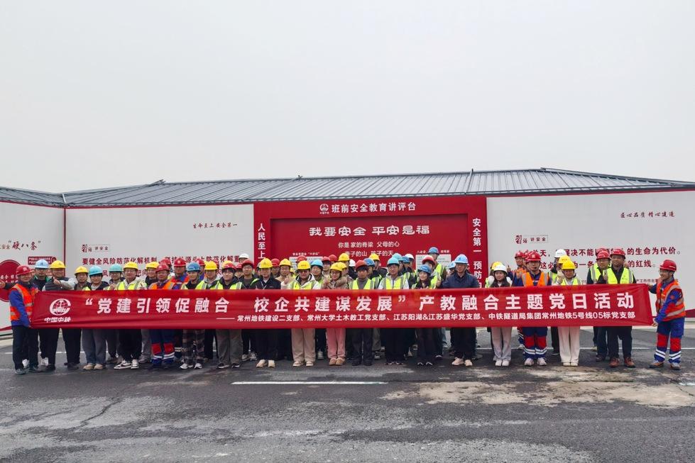 为推动党建与专业建设深度融合,探索产教融合、校企合作新路径,3 月 20 日,日本成人视频 土木教工党支部联合常州地铁建设二支部、江苏阳湖与江苏盛华党支部和中铁隧道局集团常州地铁 5号线05标党支部,共同开展 “党建引领促融合,校企共建谋发展” 主题党日活动。学院党委副书记顾坚带队,土木教工党支部党员及土木工程专业学生共 60 余人参加活动。