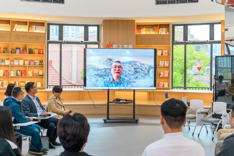 因工作无法到场的“江苏工匠”、江苏省优秀建造师经浩芳老师,通过视频寄语分享了自己从业二十余年、从一线技术员成长为正高级工程师的实干经历,并寄语青年党员:“把根扎在工地上,把心放在技术里,实干才能出真本事。”